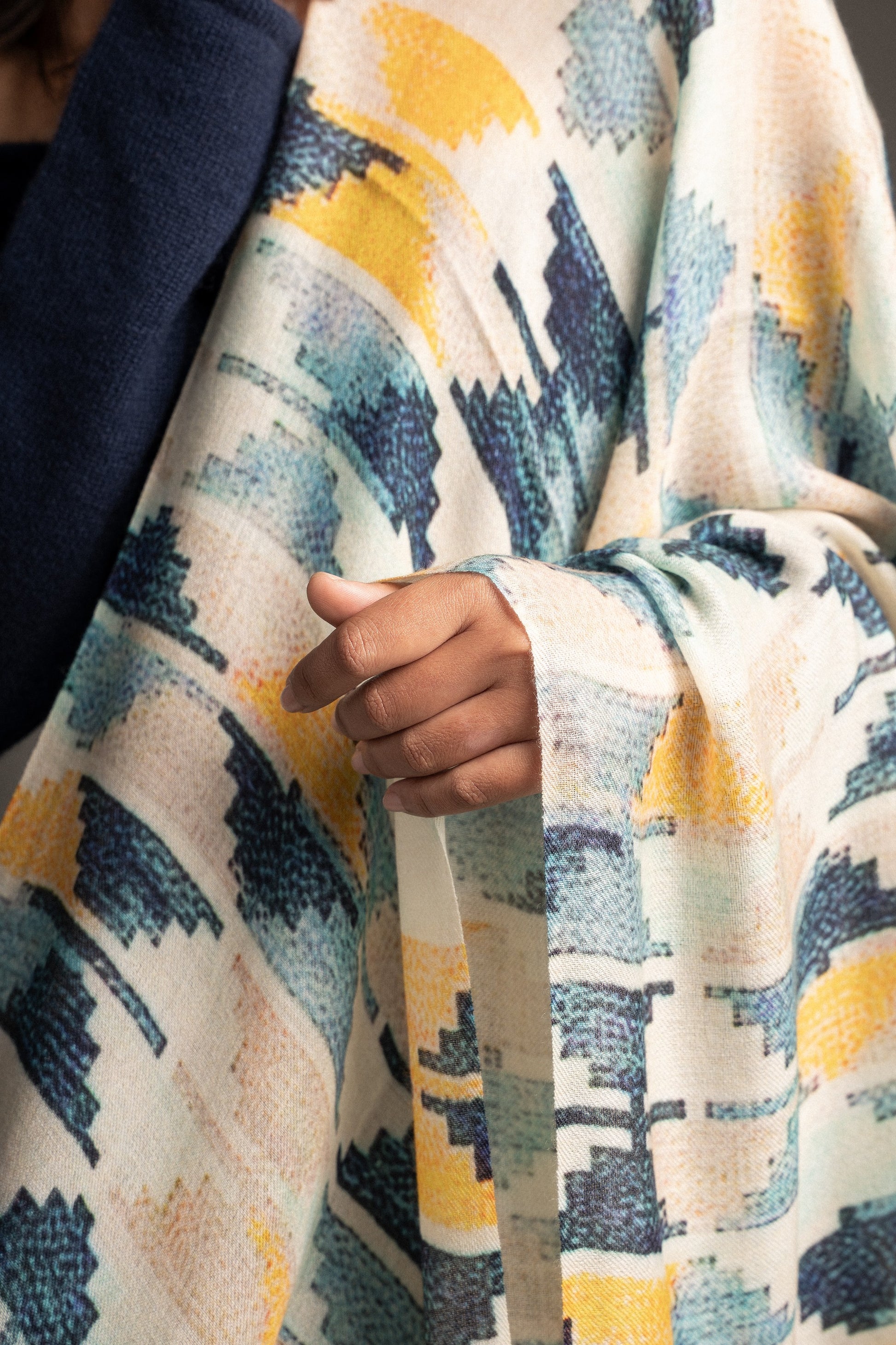 Inspired by traditional Dhaka patterns, this printed scarf brings together bultural heritage and cultural print. Lightweight, easy to drape, it adds a distinctive visual character to everyday looks.